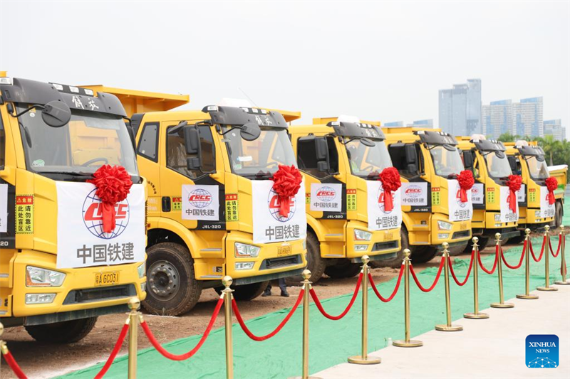 | Ein am 24. September 2022 aufgenommenes Foto zeigt Baufahrzeuge, die mit dem Bau für den ständigen Veranstaltungsort des Greater Bay Area Science Forum im Nansha-Distrikt von Guangzhou in der südchinesischen Provinz Guangdong beginnen. (Xinhua/Hong Zehua) |