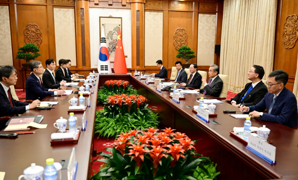 Wang Yi, der zugleich Mitglied des Politbüros des Zentralkomitees der KP Chinas ist, begrüßte Chos ersten offiziellen Besuch in China. Er betonte, beide Länder gehörten zu den Gewinnern der wirtschaftlichen Globalisierung. Angesichts einseitiger Hegemoniebestrebungen gelte es, gemeinsam dem Handelsprotektionismus entgegenzutreten und das internationale Freihandelssystem zu verteidigen. China wolle zusammen mit der internationalen Gemeinschaft, einschließlich Südkoreas, das multilaterale System mit den Vereinten Nationen im Zentrum stärken und die internationale Ordnung in eine gerechtere und vernünftigere Richtung weiterentwickeln.