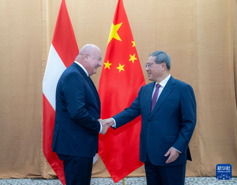 Bei seinem Treffen mit dem österreichischen Bundeskanzler betonte Li, dass China und Österreich seit der Aufnahme diplomatischer Beziehungen stets einander mit Respekt und Gleichberechtigung begegnet seien und sich die bilateralen Beziehungen insgesamt stetig und stabil entwickelt hätten. China sei bereit, das 55-jährige Jubiläum der Aufnahme diplomatischer Beziehungen im kommenden Jahr als Gelegenheit zu nutzen, den hochrangigen Austausch zu intensivieren, das politische Vertrauen zu festigen, die für beide Seiten vorteilhafte Zusammenarbeit zu vertiefen und weitere konkrete Ergebnisse zu erzielen. Er hoffe, dass die österreichische Seite am Ein-China-Prinzip festhalte und damit das politische Fundament der bilateralen Beziehungen stärke.