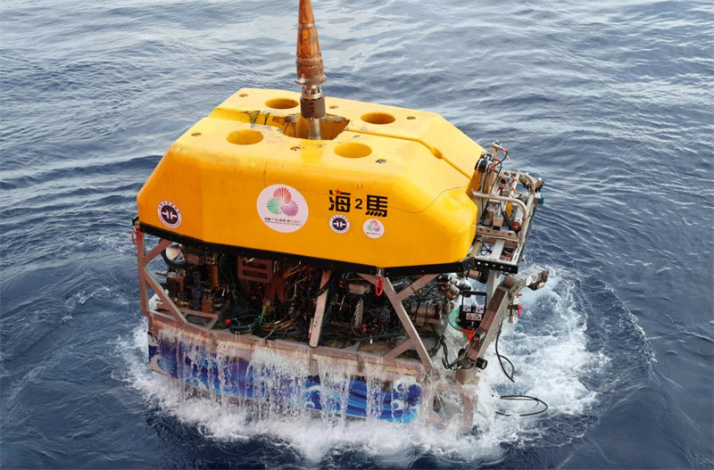 Nach der Entnahme des „Urfeuers“ steigt das ferngesteuerte Tiefsee-Tauchboot „Hai Ma“ vom Meeresboden an die Oberfläche auf, 18. September. (Xinhua/Lu Hanxin)