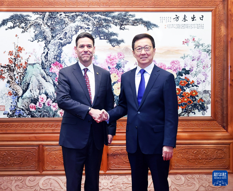 Der stellvertretende chinesische Staatspräsident Han Zheng hat sich am Dienstag in Beijing mit Rob Wagner, dem Präsidenten des Senats des US-Bundesstaates Oregon, getroffen.