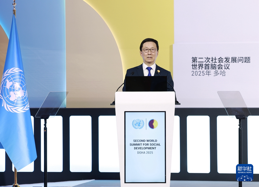 Der stellvertretende chinesische Staatspräsident Han Zheng hat am Dienstag in seiner Rede auf der Generaldebatte des derzeit stattfindenden zweiten Weltgipfels für soziale Entwicklung in Doha einen viergliedrigen Vorschlag zur Förderung der sozialen Entwicklung weltweit vorgelegt.