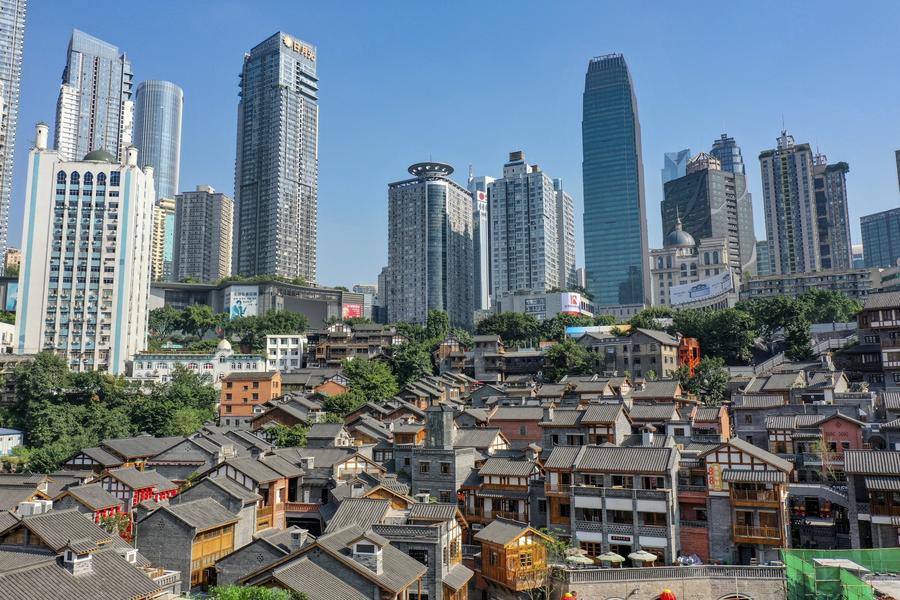 Das Geschäftsviertel Jiefangbei (im Hintergrund) und Shibati im südwestchinesischen Chongqing. (Xinhua/Huang Wei)