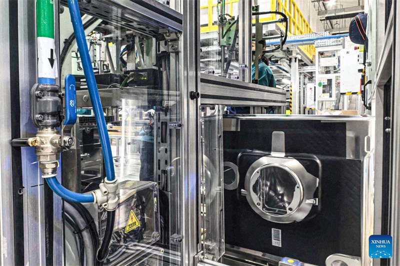 KI-gestützte Qualitätsprüfsysteme erkennen mikroskopisch kleine Fehler in der Geschirrspülerfabrik der BSH Home Appliances Group in Chuzhou, ostchinesische Provinz Anhui, 8. Dezember 2025. (Xinhua/Zhao Jinzheng)