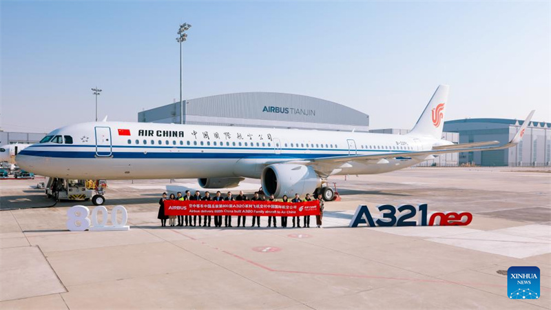 Der europäische Flugzeughersteller Airbus hat am Mittwoch die 800. Maschine der A320-Familie ausgeliefert, die an der A320 Family Final Assembly Line Asia (FALA) in der Gemeinde Tianjin im Norden Chinas montiert wurde.