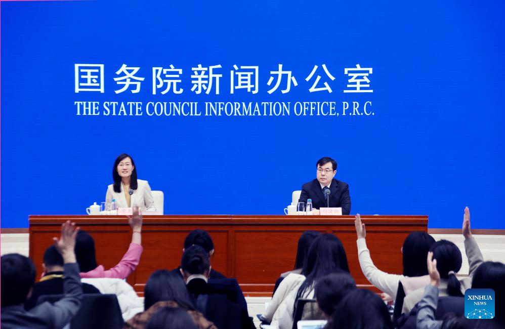 Fu Linghui (rechts), Sprecher des Nationalen Statistikamtes, nimmt an einer Pressekonferenz des Informationsbüros des Staatsrats (SCIO) über Chinas Wirtschaftsleistung in den ersten beiden Monaten des Jahres 2026 in Beijing, der Hauptstadt Chinas, am 16. März 2026 teil. (Xinhua/Pan Xu)
